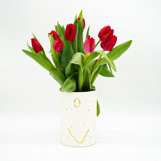 Vase - Keramik groß weiß/gold