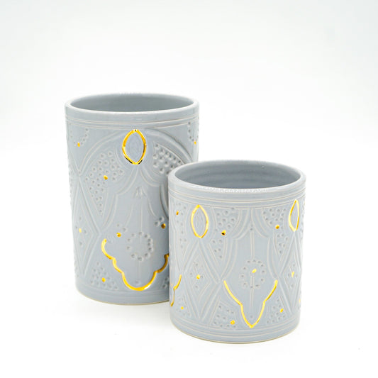 Vase - Keramik klein grau/gold