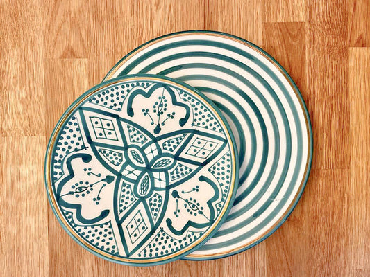 Keramikteller – Grün/Weiß gemustert klein